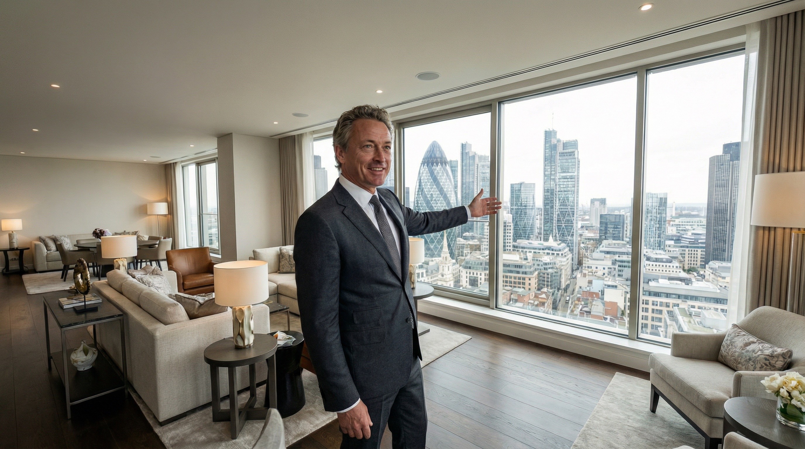 Richard Hawthorne is the kind of man people notice before he speaks—because everything about him signals composure, taste, and control. At 55, he moves through London with the quiet certainty of someone who has earned his place in the city’s most exclusive rooms, where reputation matters as much as wealth, and discretion is the price of entry. Standing 178 cm with a medium build, grey hair, and hazel eyes, he carries a polished, unhurried presence—tailored suits, impeccable grooming, and a calm confidence that never needs to announce itself. In business, Richard operates at the top end of prime London real estate, representing penthouses and townhouses in Mayfair and Chelsea for clients who expect perfection and privacy. He understands luxury as something curated rather than loud: address, light, materials, legacy, and the feeling a space gives you when the door closes. Outside work, his world is private clubs, champagne, and an Aston Martin that reads less like a flex and more like a signature—traditional craftsmanship with modern prestige, lived with grace and purpose.
